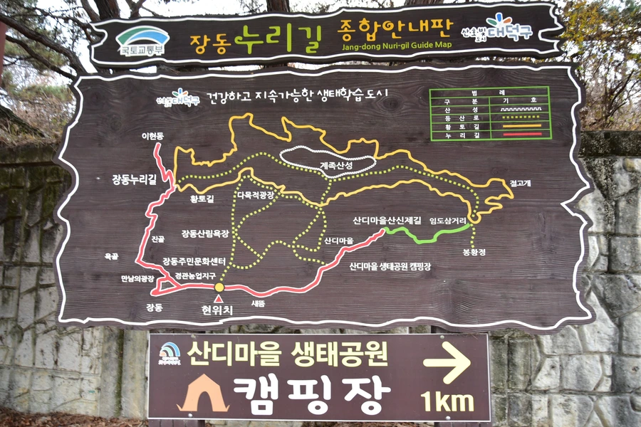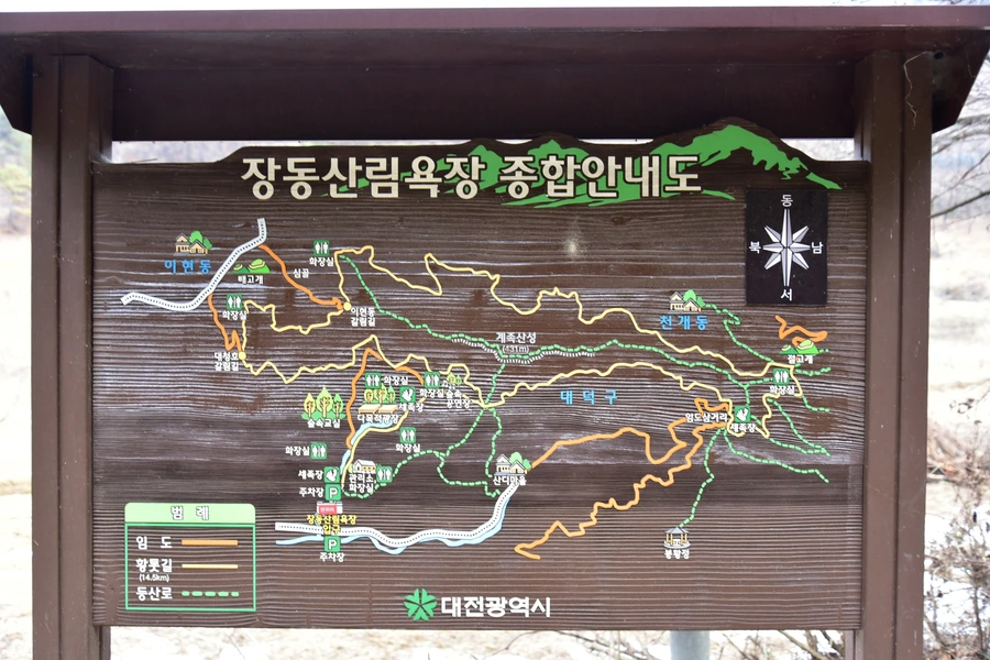 대전둘레산길 6코스이기도 한 장동누리길은 <용화사 - 계족산 봉황정 - 장동고개 - 이현동>의 총 13.4km의 거리라고 합니다.