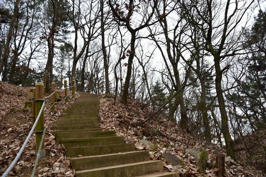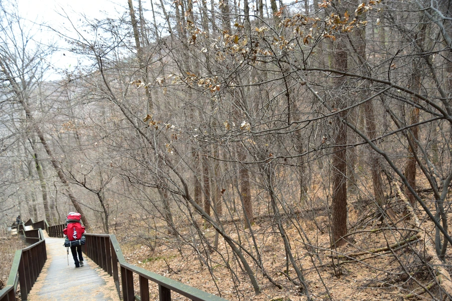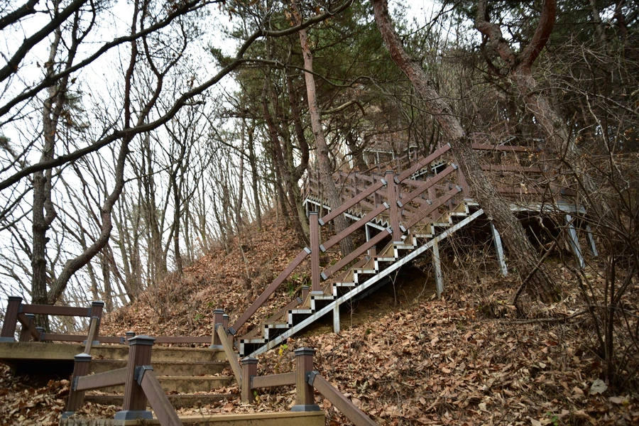 경사가 꽤 급하지요. 계단이 있어서 수월하게 올라갈 수 있습니다.