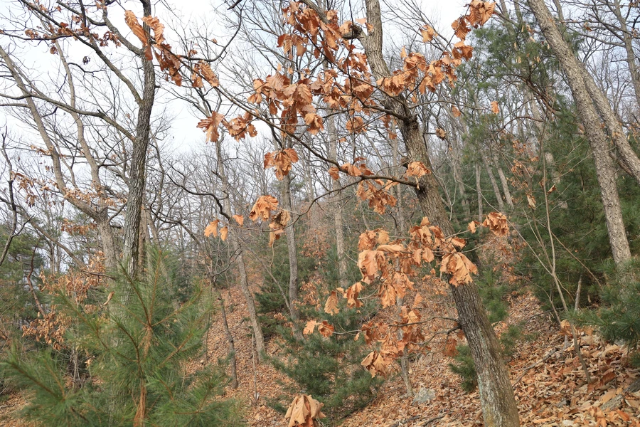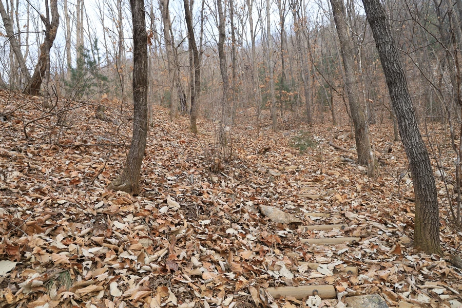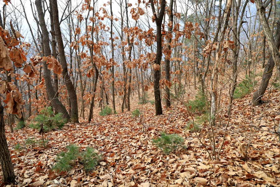 살펴보니 잎이 커다란 떡갈나무 낙엽이 많이 보인다. 떡갈나무가 많은 곳인가 보다.