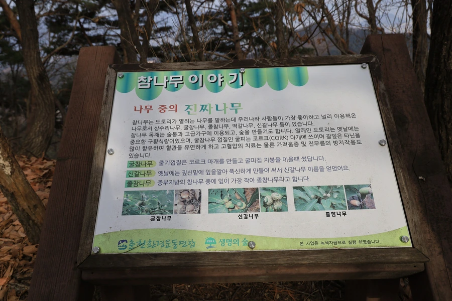동화책에서 토끼의 물그릇으로 등장하는 도토리 모자를 발견했다. 안내판을 보니까 굴참나무 도토리라고 한다.