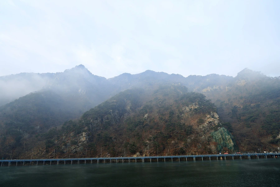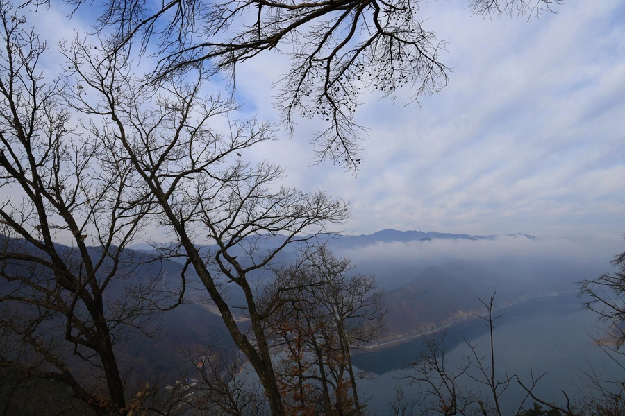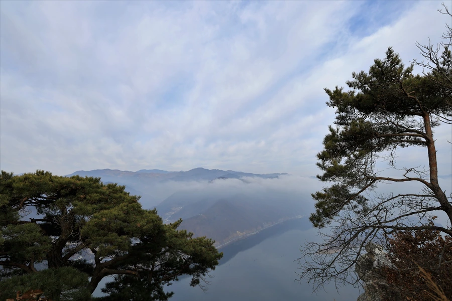하늘에는 구름이, 의암호 호수에는 안개가 멋진 풍경을 만들어낸다.