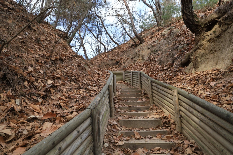 제법 가파르게 올라간다. 이럴 때 계단이 큰 도움이 된다.