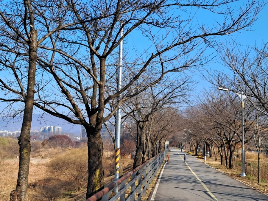 오늘 본 물소리길은 찬란했던 벚꽃 잔치도, 연둣빛 수양버들의 행렬도 사라진 말끔함만 남은 길이었지만.