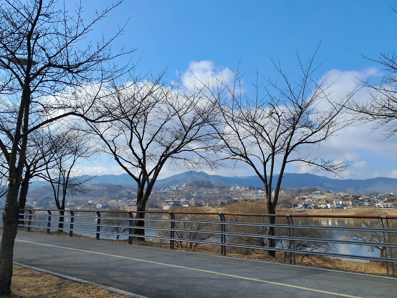 남편이 양평읍 사무소까지 걷자고 한다. 아직 건축물대장에는 기재되지 않았지만, 주소가 나왔으니 전입신고가 되는지 가 보자는 것이다. 인터넷 검색에는 된다 안된다 의견이 분분하니, 직접 가서 알아보기로 했다. 결론은 된다! 였다. 주소가 옮겨졌다. 앞으로 서울집이 팔릴 때까지 3도 2촌 또는 2도 3촌을 해야겠지만, 이미 양평집에 마음이 더 많이 가 있는 느낌이다. 신림동에서 16년 살았으니 꽤 오래 살았다. 동네 구석구석, 관악산 둘레길 구석구석 꽤 많이 익숙해서 떠날 수 있으려나 싶지만, 양평 가면 또 이 구석 저 구석 눈에 들어와 친숙해지는 중이라 별로 걱정은 안 된다. 마을이 새로 개발된 주택단지 끝 쪽이라, 드나드는 사람도 별로 없고, 빈 택지도 많이 있어서 한적하다. 그야말로 사람 구경하기 힘들다. 아직 추울 때라 그런지, 꽃밭 가꾸는 계절이 되면 사람 구경도 좀 할 수 있을까. 자전거길에서 집을 찍어봤는데, 역광이라 잘 안 보이지만, 그래도 올려본다.