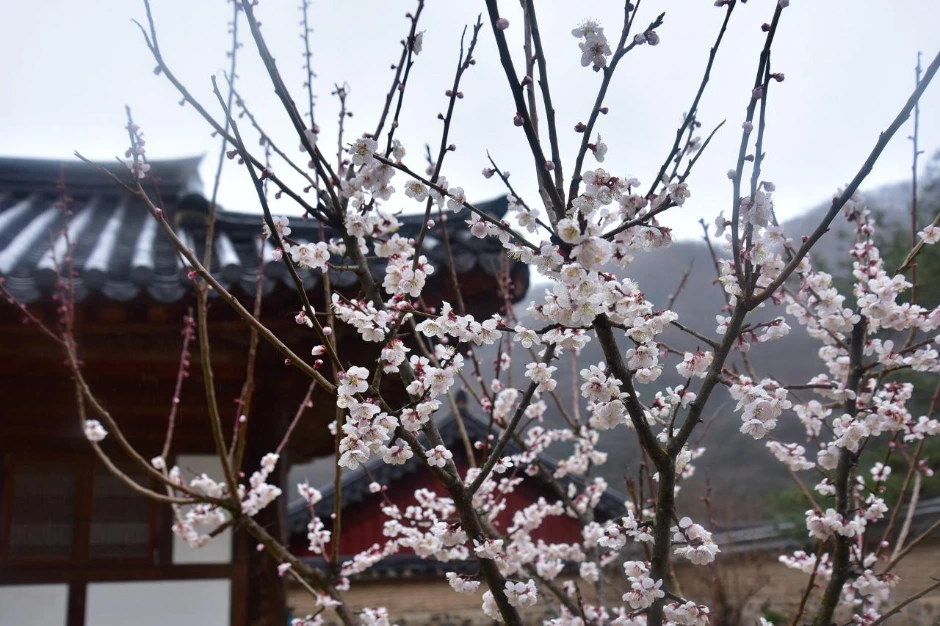 우선 매화나무를 찾았다. 붉은빛 꽃몽오리를 잔뜩 가지마다 매달고 있는 고불매가 눈에 들어온다. 좀 이른 모양이다. 만개하려면 일주일은 더 있어야 할 것 같다. 그래도 주변에 심어놓은 청매화, 홍매화는 활짝 피어 다행이다. 오래된 매화라 피는데 좀 더 시간이 걸리는가 싶다.