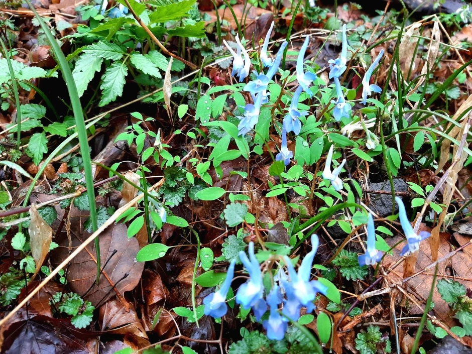 되돌아오는 길에 쌍계루 옆길에서 반가운 야생화를 또 만났다. 아까는 보지 못한 현호색이 한쪽 기슭에 빽빽하다. 아마 쌍계루 쪽 풍경만 살피느라 놓친 모양이다. 작아서 눈에 잘 띄지 않는 꽃이지만 무리 지어 존재감을 드러낸다.