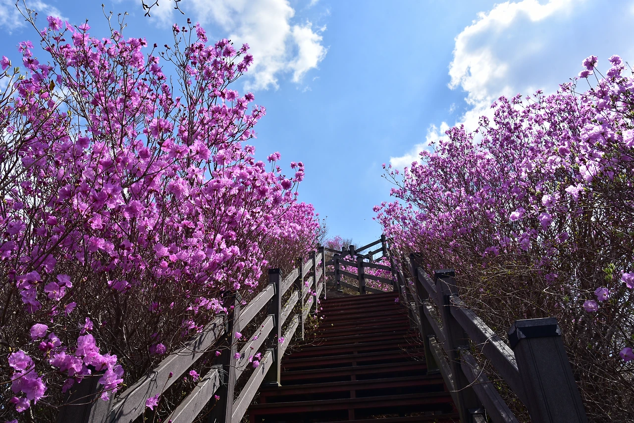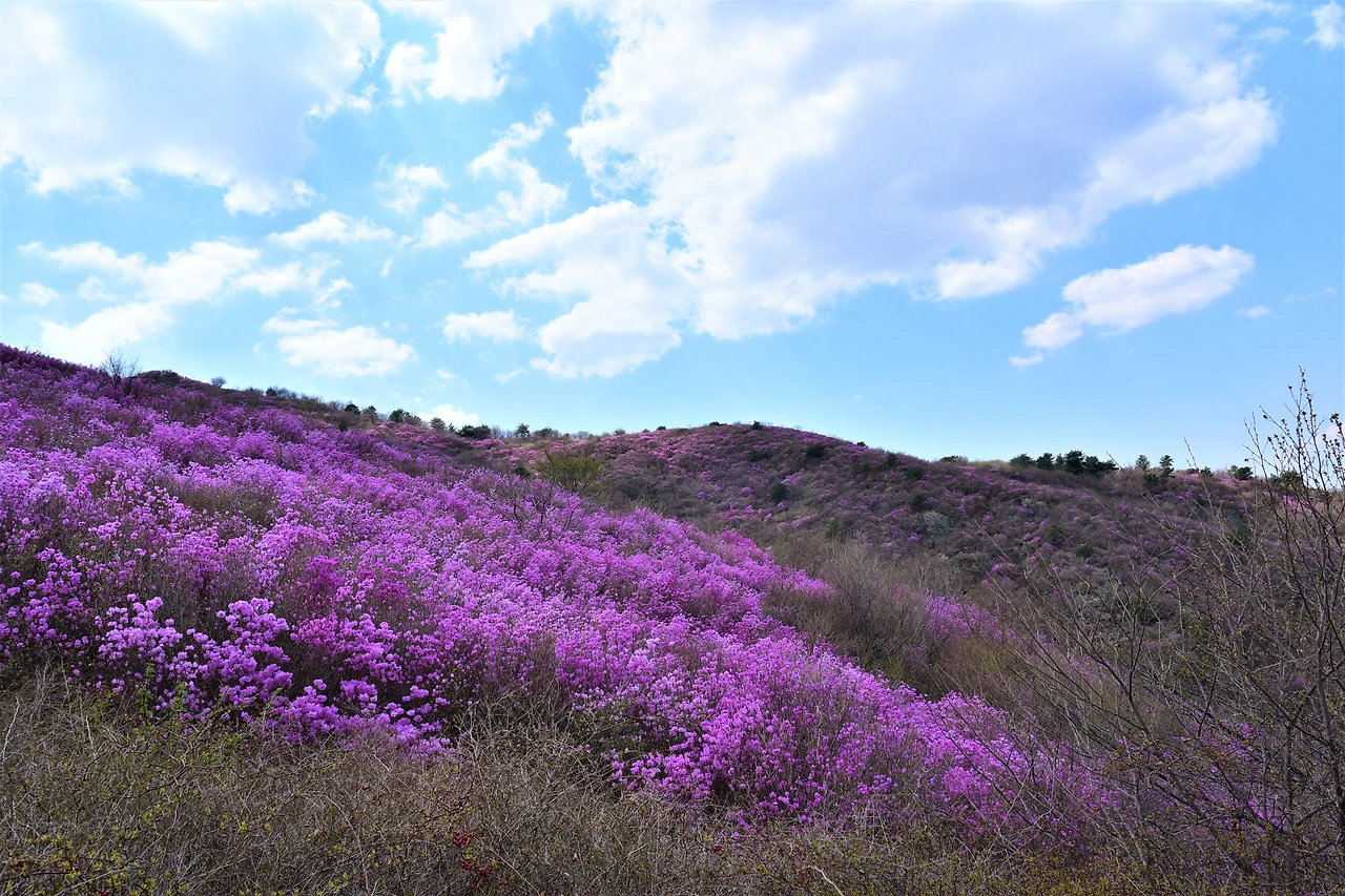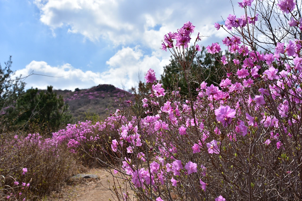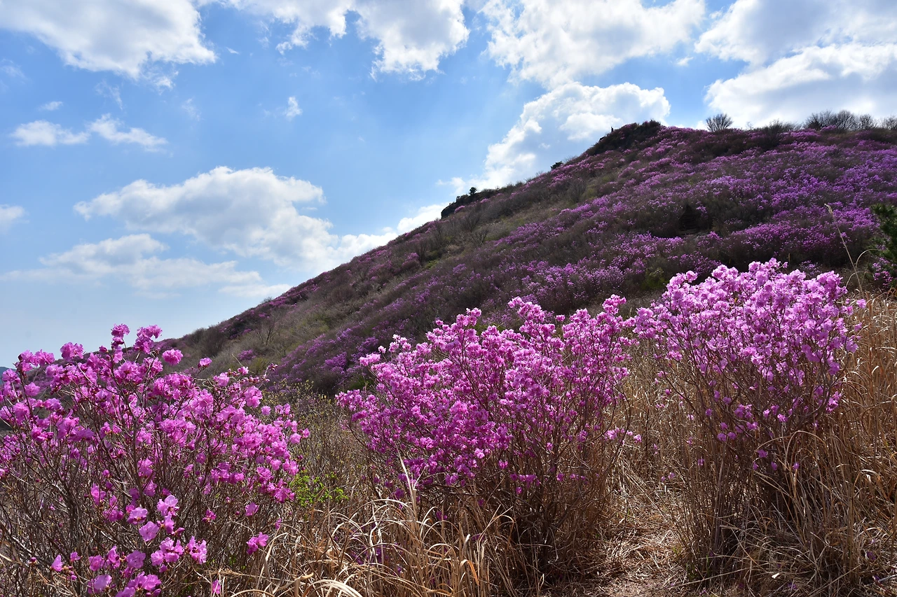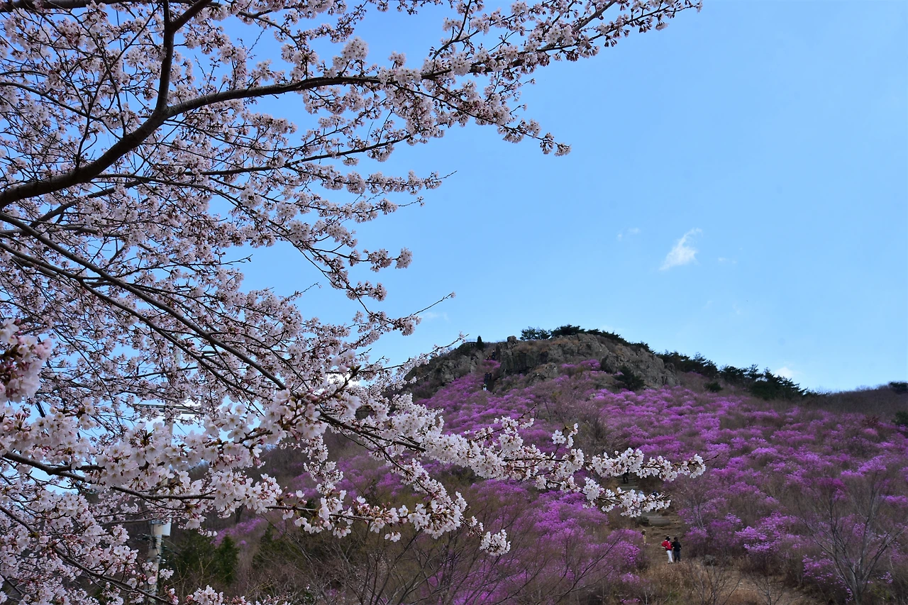 진달래는 우리나라 전 지역에 군락지가 있다. 가까운 고려산이나 부천 원미산에 잘 알려진 진달래 군락지다. 가까운 데서 진달래 봐도 되는데, 뭐 하러 그리 멀리 가서 보려는지. 피크 맞추기도 쉽지 않은 것을... 그런데, 묘하다. 동네 가까운 데는 여행이 아닌 것 같다. 나들이나 소풍 수준이라는 느낌이 강해서, 그래서 짐 싸서 그 먼 곳 여수까지 가는 걸까.