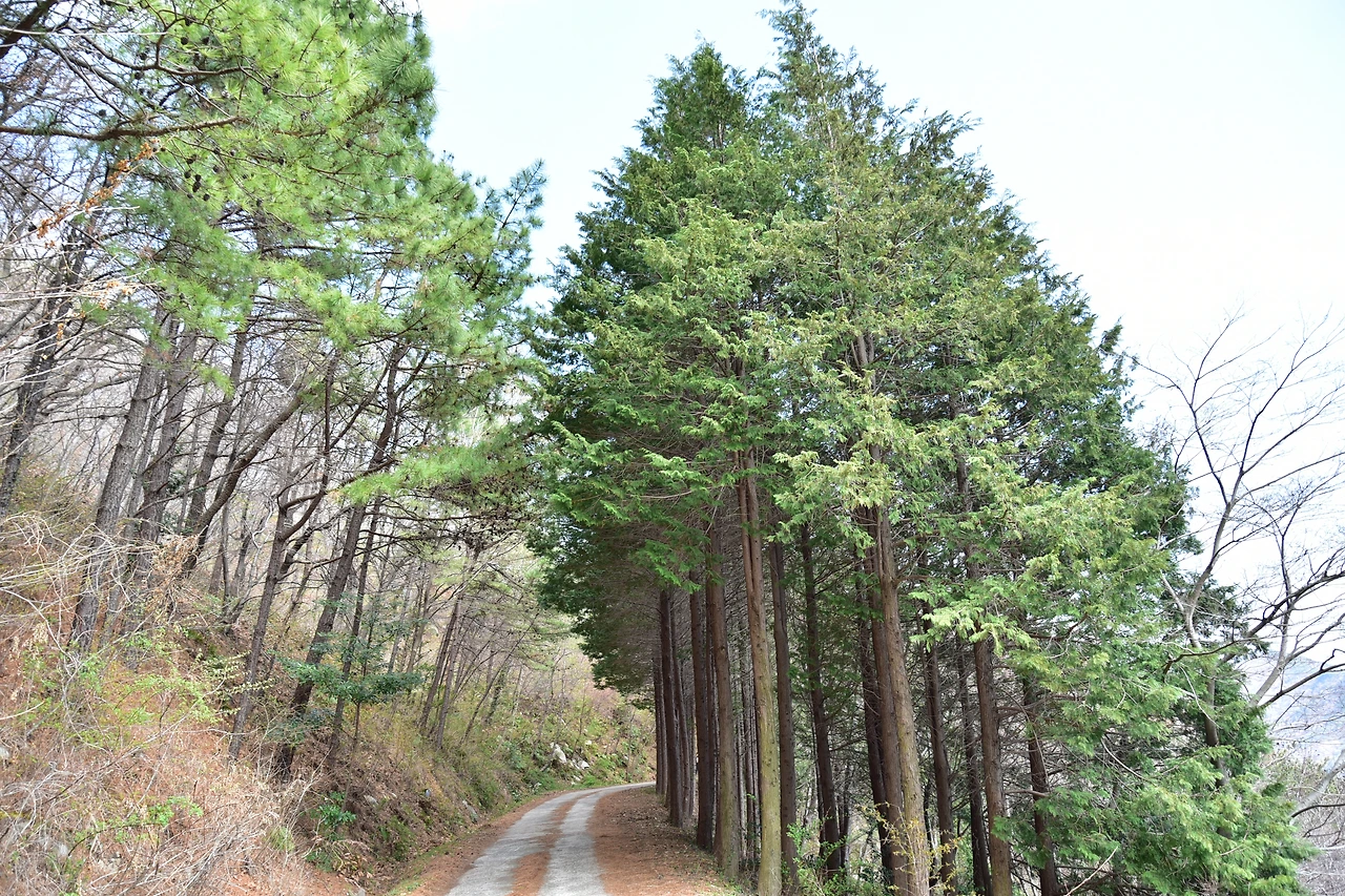 보통 임도길은 넓은 길이라 땡볕에 걷기 쉬운데, 길이 참 쾌적하였다. 중간중간 키가 큰 편백나무가 햇볕을 가려주기 때문이다. 임도를 걷는 내내 시야는 가리지 않으면서 편백나무 숲을 걷는 듯한 상쾌함을 느낄 수 있었다.