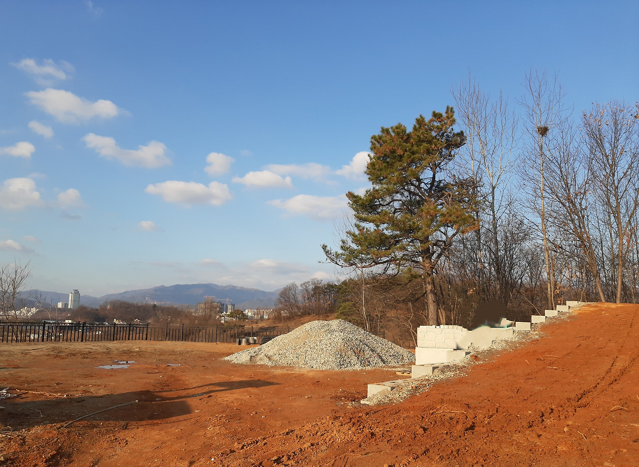 그 뒤 잔금을 빨리 받으려는 계산인지, 그때까지 미루던 보강토 블럭 공사와 토지 평탄화 작업을 진행하였다. 소나무 제거는 좀 더 시간이 걸렸다.