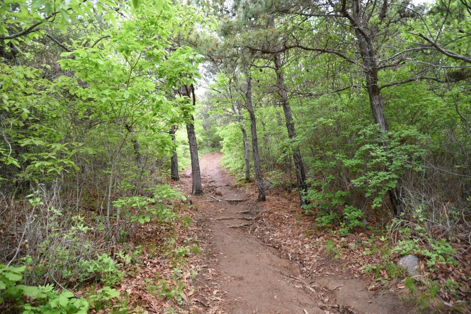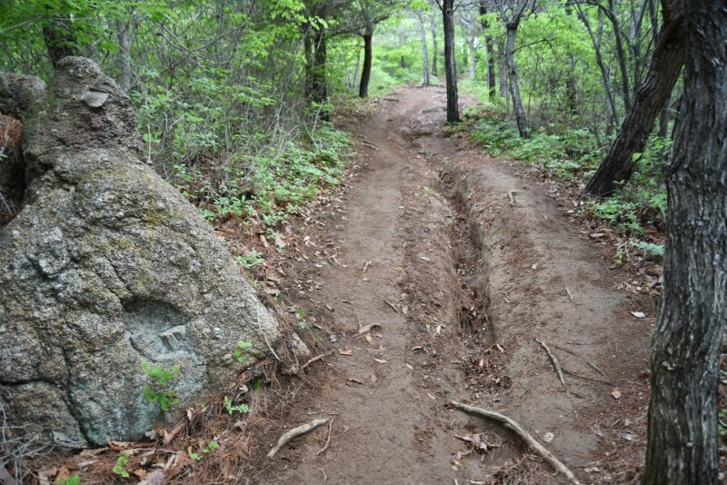 경사가 급하니까 등산로가 많이 상했다. 길이 움푹 파여서 마치 계곡을 이루고 있는 것 같다. 비가 꽤 많이 왔나 보다. 길에 먼지는 나지 않아 좋았지만, 미끄러질까 봐 조심조심 걸음을 옮겼다.