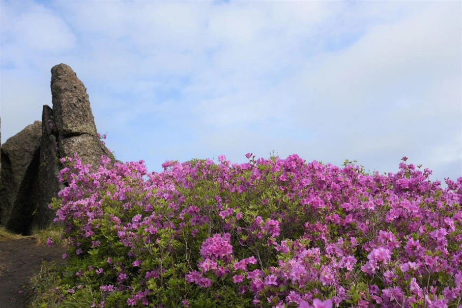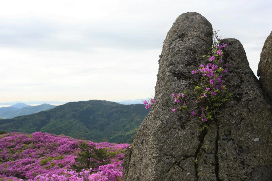 바위들이 멋지다. 커다란 바위의 틈새로 철쭉 빛깔을 감상해 보기도 한다.