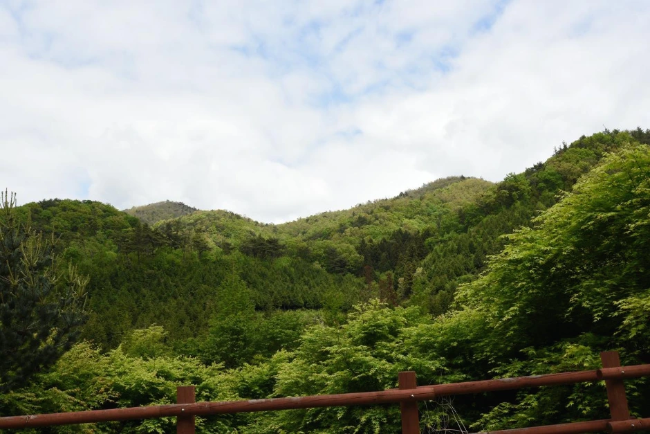 걸어 나오는 내내 녹색 풍경이 우리를 즐겁게 한다. 녹색 그라데이션은 여전한데, 짙은 색 삼나무 숲이 색 하나를 더 보탠다.