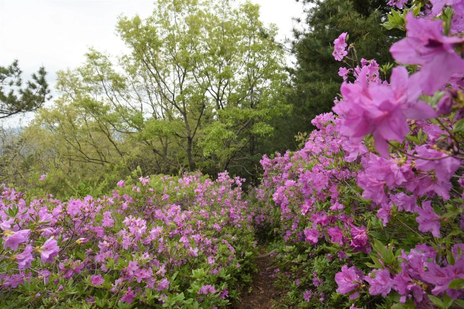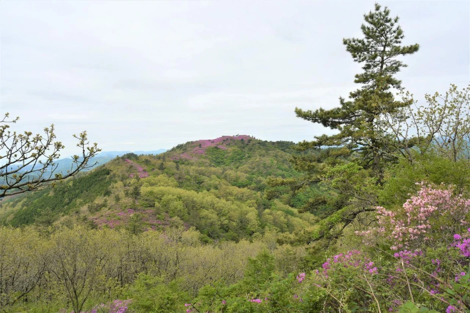 조금만 더 올라가면 철쭉을 본격적으로 만나게 된다. 정상이 가까워지면서 철쭉은 시야에 한꺼번에 들어온다. 유명 군락지답게 눈에 보이는 것이 다 철쭉이다.