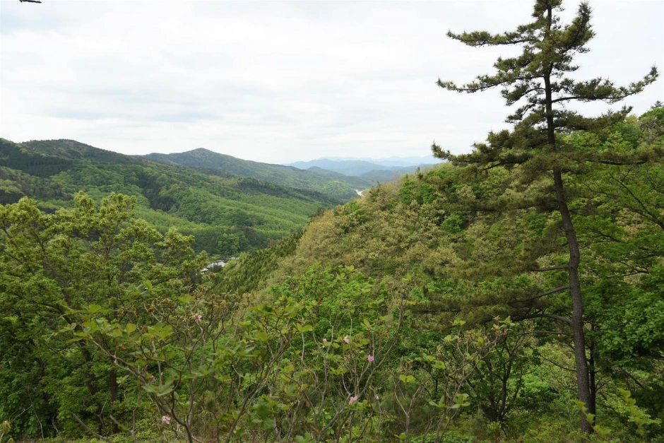 작은 봉우리인 밤골재에 올라서니 등산객들을 위한 벤치가 몇 개 설치되어 있다. 정상을 바라보는 쪽으로 방향을 잡아 아름다운 경치를 보면서 휴식할 수 있게끔 한 작은 배려가 고맙다. 간단히 간식을 먹고 다시 길을 나선다.