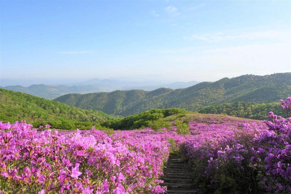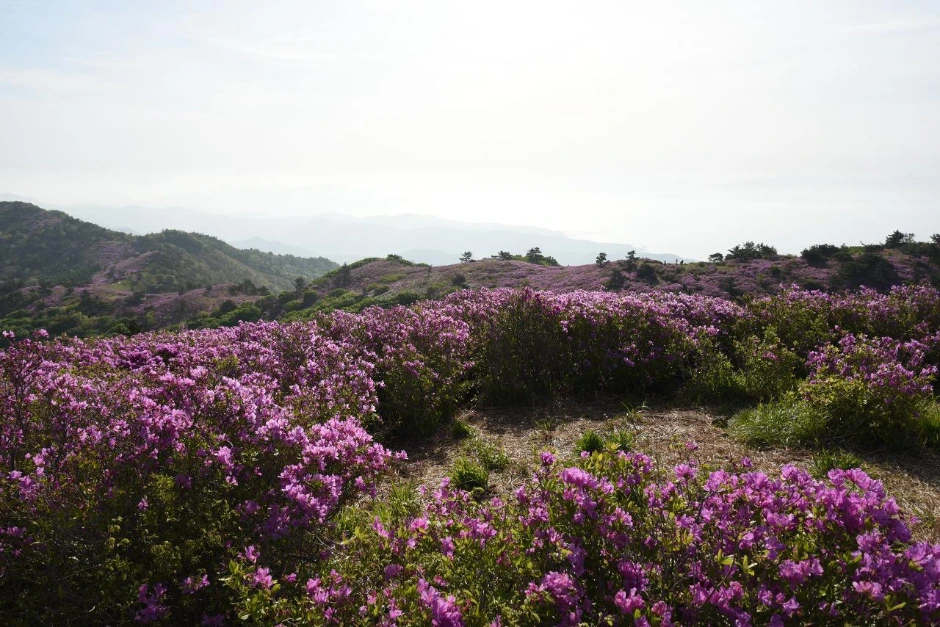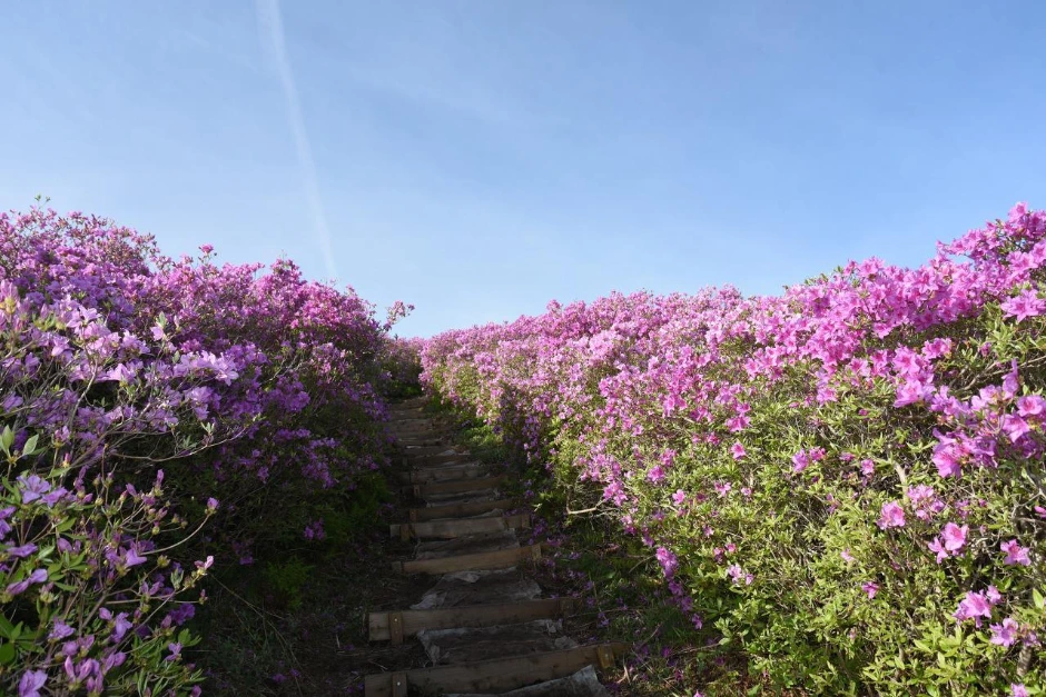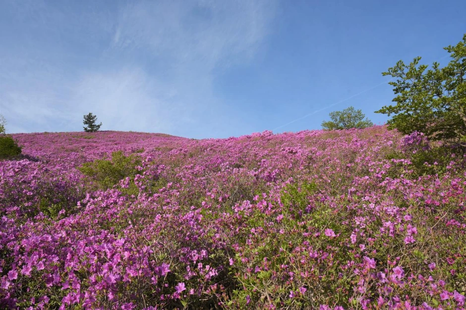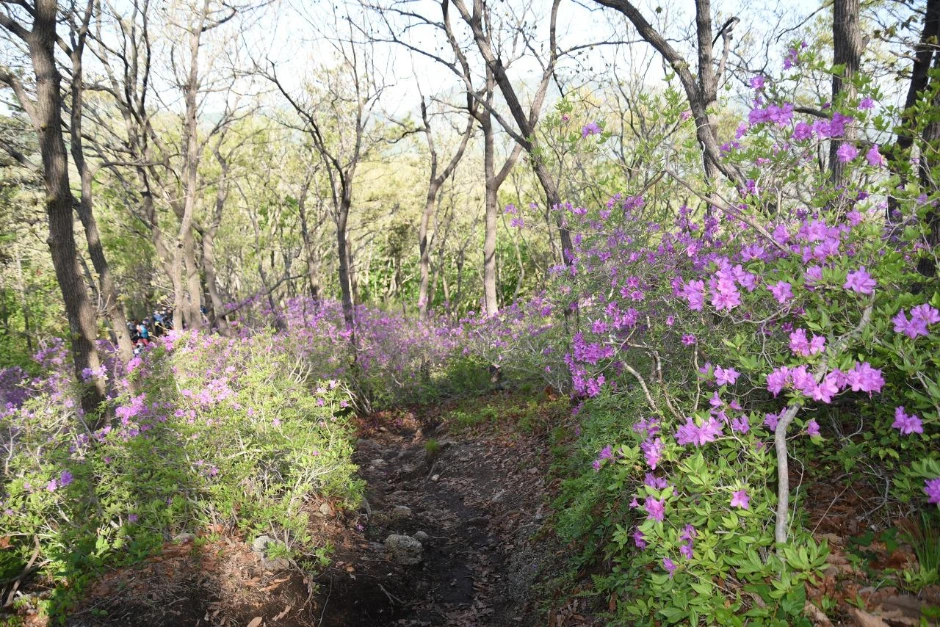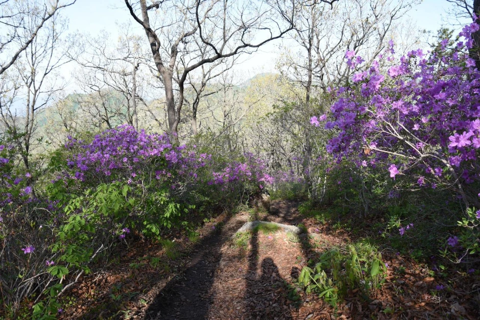 철쭉의 향연. 더 무슨 설명이 필요할까. 유달리 선명한 빛깔의 철쭉 군락지가 화려하다. 힘들여 걸어 올라온 수고로움이 보상받는 순간이다.