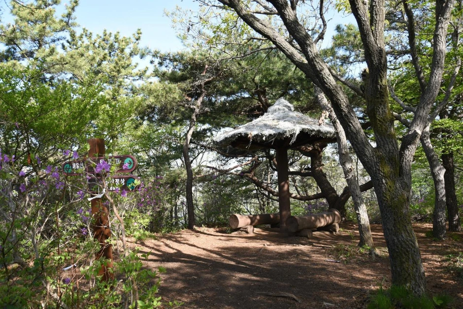 골치재 쪽으로 내려간다. 5년 전이나 지금이나 변함없이 원두막이 있는 쉼터가 우리를 맞이한다.