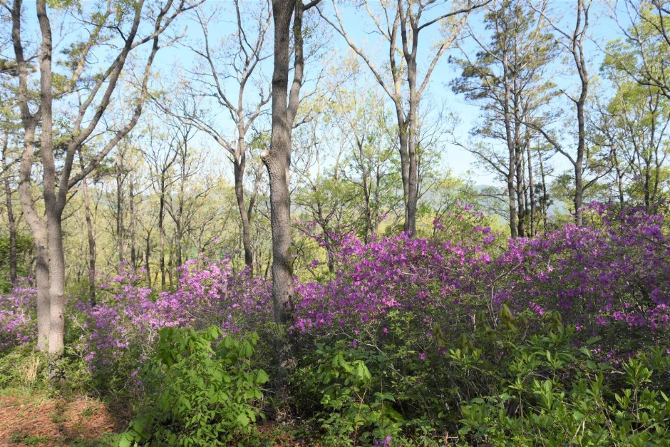 골치재 쪽 등산로에는 철쭉이 적은 편이다. 식재한 듯한 철쭉이 크고 있으니, 몇 년 안 가서 아름다운 철쭉 군락을 이루리라 생각된다.