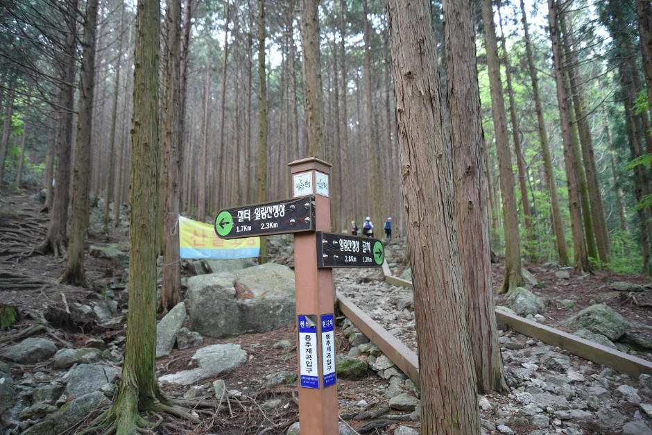 절터와 보성강 발원지 갈림길 안내판을 만났다. 우리는 발원지 쪽 일림산 정상 방향으로 간다.
