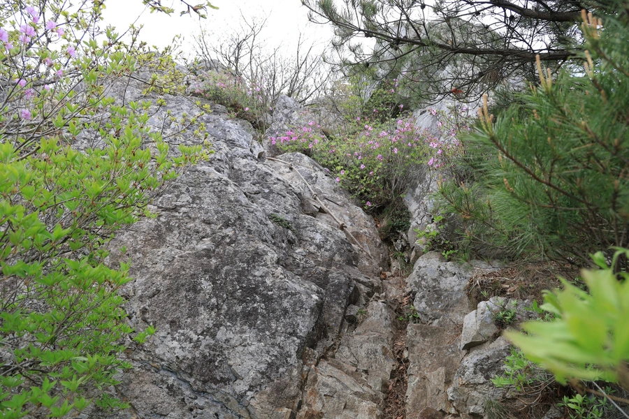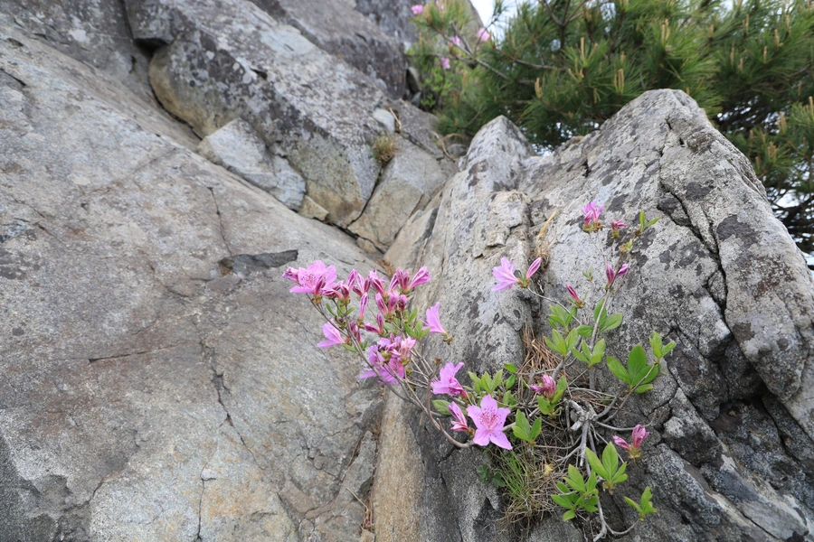 바위틈의 철쭉은 생명의 위대함을 보여준다. 얼마 안되는 흙 속에 뿌리를 박고 아름답게 꽃을 피우는 모습이 대견하다.