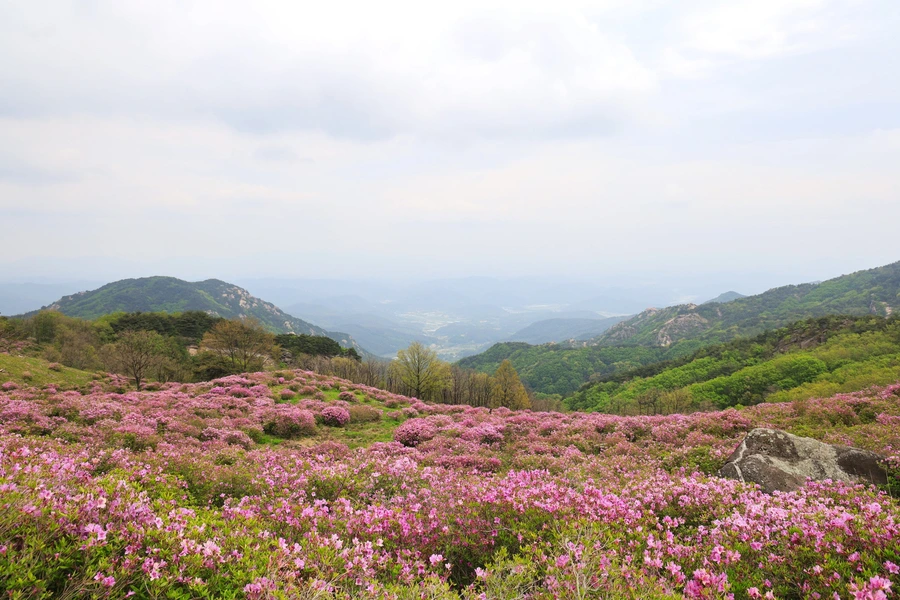 일림산 철쭉 군락지가 약 100만 평이라고 하는데, 우리가 보기에는 황매산이 훨씬 넓어 보였다. 자료를 찾아보니 황매산 군락지가 약 330만㎡라니까 90여만 평 정도라고 한다. 아마 일림산은 등산로를 따라 길게 조성되어 있고(12.4km) 황매산 철쭉은 거의 한곳에 모여있어서 그런 느낌이 드는 것 같다