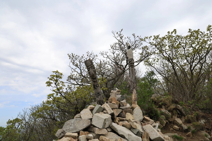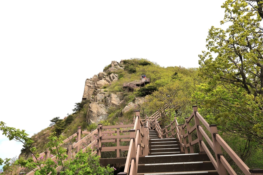 계단을 올라가야 정상을 만날 수 있다. 쉽게 보여서인지 물도 배낭도 없이 정상을 올라갔다가 내려오는 관광객 부부가 지쳐서 주저앉아있는 것을 어느 친절한 산객이 물을 나눠준다. 천 고지가 넘는 산이라 생각보다 어려운 길이다. 준비 없이 올라갔다가는 낭패보기가 쉬운 산이다.