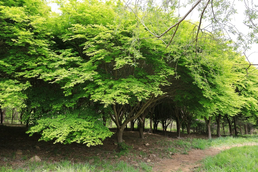 단풍나무숲. 큰 나무숲 그늘의 데크는 휴식 공간으로 그만이다.