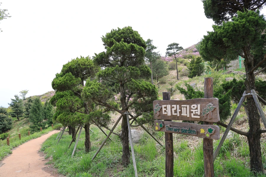 황매산 수목원에 있는 테라피원을 통과했다. 유실수원, 화이트원, 테라스원, 덩굴식물원, 그라스원, 자생식물원, 향기원 등 주제별로 구성이 되어있다고 한다.