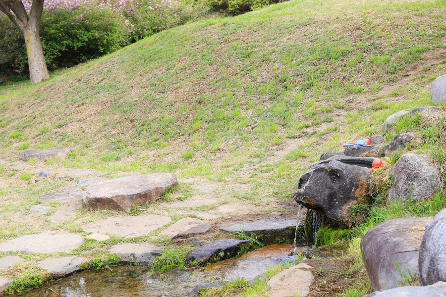소원을 빌면 뭐든 다 이루어진다는 돌팍샘이다. 약수가 나오는 바위가 마치 물개 같다.