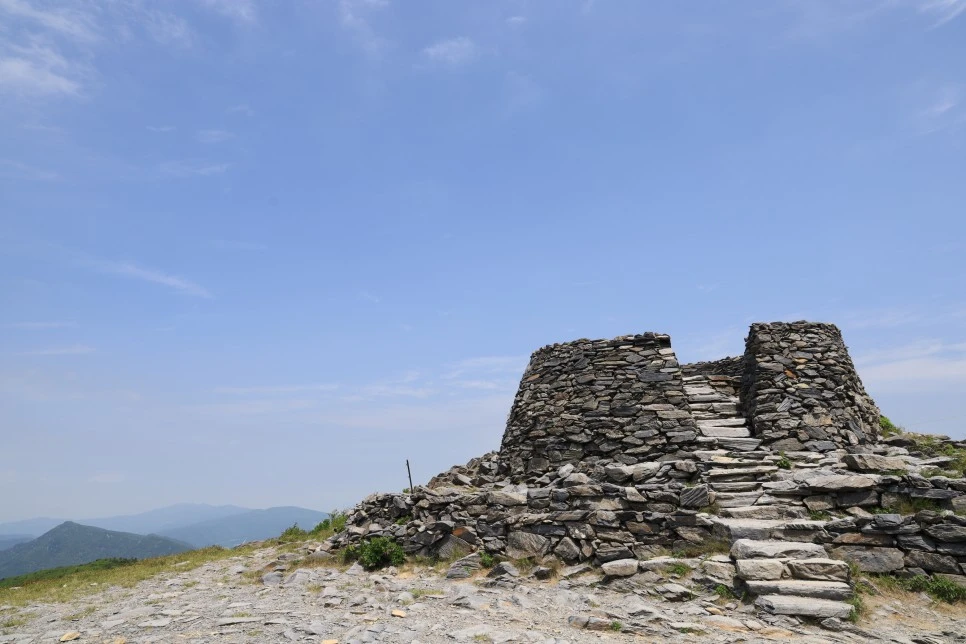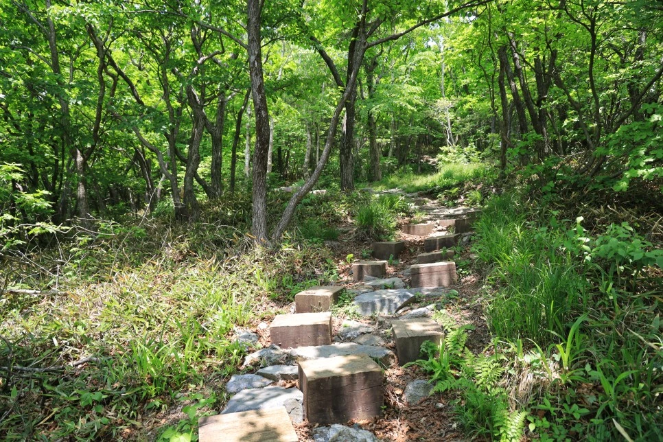 돌계단 사이사이에 나무토막으로 된 계단을 설치해 두어 걷기가 한결 편했다.