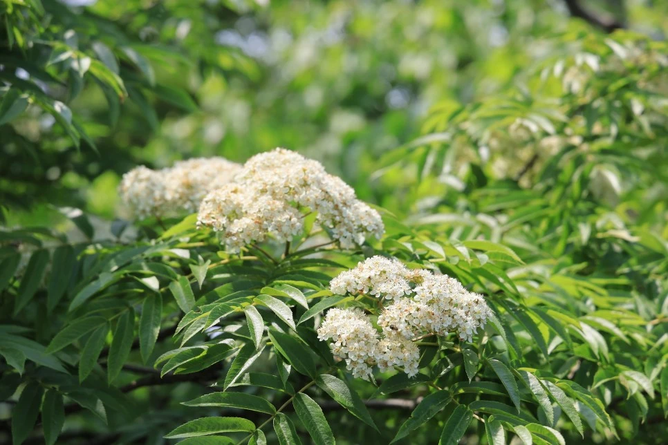 마가목 꽃이 소담스럽게 피었다. 하도 풍성해서 목수국 꽃핀 것 같다.