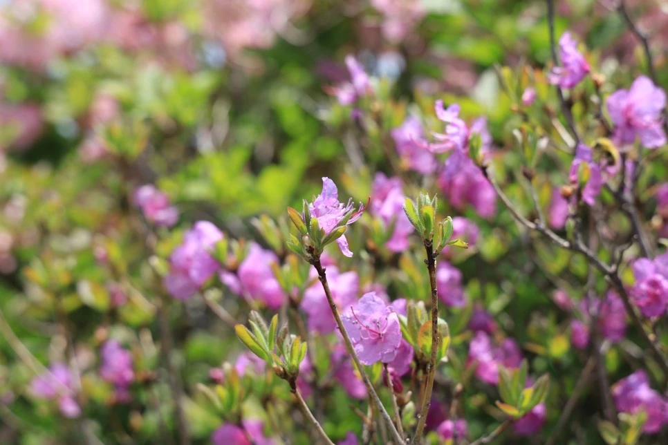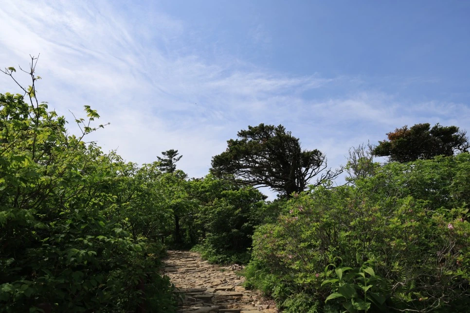 정상 부근에서 철쭉을 만났다. 태백산 철쭉은 소백산 철쭉과 마찬가지로 연달래라고 부르는 연분홍 철쭉이다. 색감이 부드럽고 고상하여 양반집 규수 같은 품위가 있는 꽃이다.