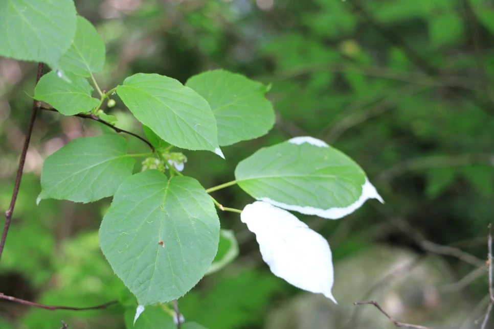 개다래는 곤충을 유인하기 위하여 잎의 색을 변화시킨다. 흰색이 주로 많지만 분홍으로 바뀐 경우도 있다. 그렇다고 꽃이 없는 건 아니다. 꽃을 만나기 힘든데, 마침 꽃이 예쁘게 피어서 찍어보았다.
