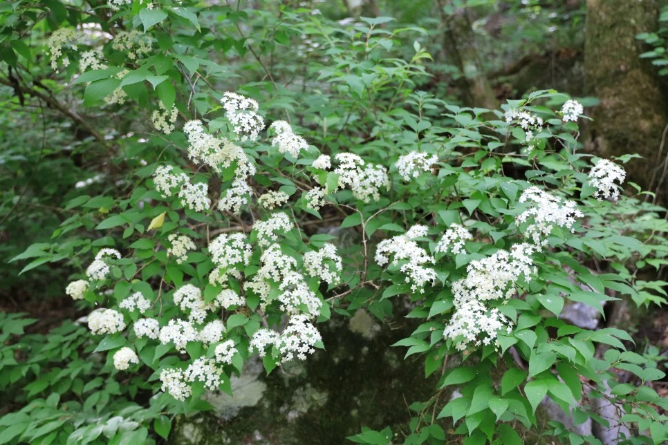 물참대로 생각된다. 하얀 꽃이 모여서 동그레 한한 큰 화형을 이루고 있다.