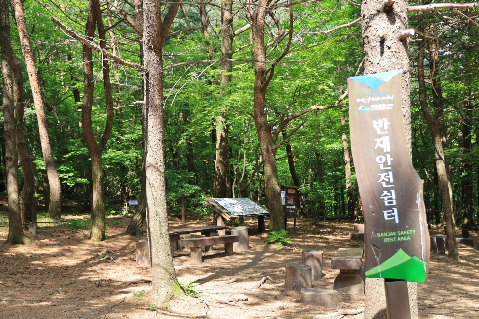 시간이 일러서 늘 산객들로 북적대던 반재 쉼터가 텅 비었다.