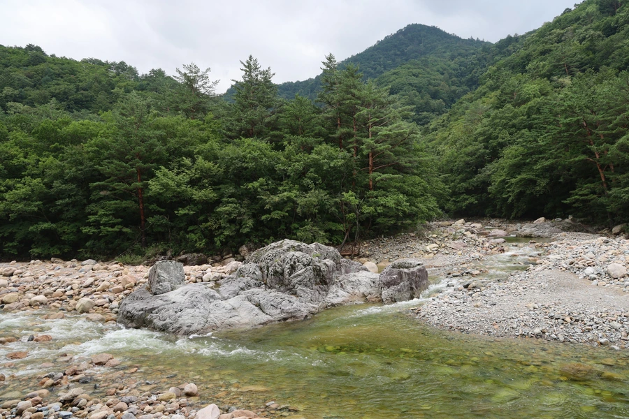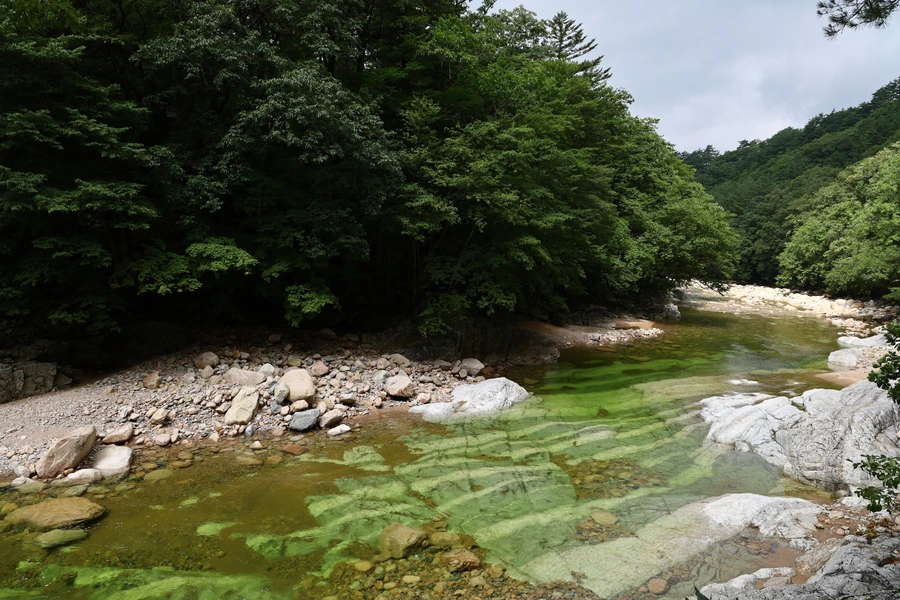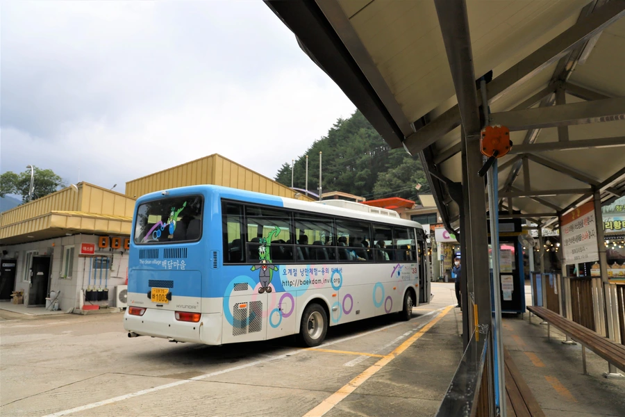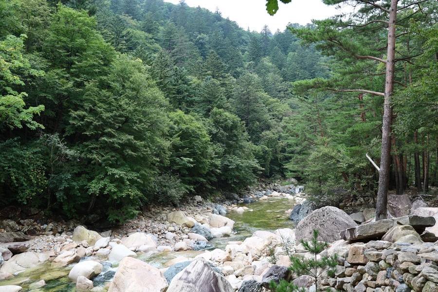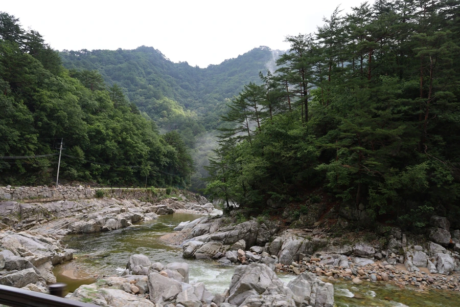 용대리에서 백담사까지 가기 위해 마을에서 운영하는 셔틀버스를 탄다. 버스 요금은 편도 1인당 2,500원이다. 총 7km, 우리 걸음으로 가면 2시간도 더 걸릴 거리를 단 15분 만에 백담사까지 데려다준다. 도중에 버스 안에서 계곡의 경치를 담아보려고 했지만, 카메라 초점이 맞지 않아 실패하고 몇 장만 건졌다.