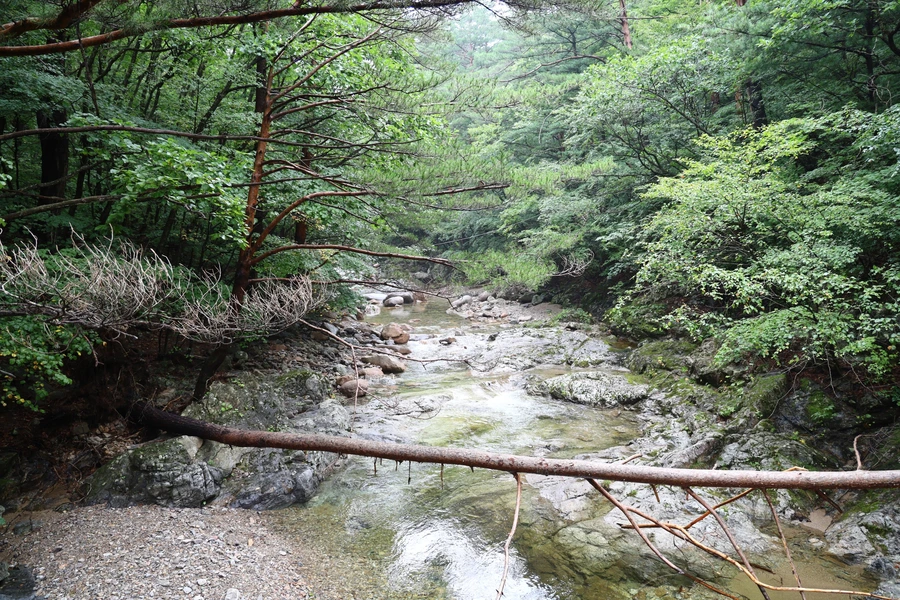계곡이 더 넓어진 듯하다. 계곡 가운데 있는 두 그루의 나무들은 항상 이곳을 올 때마다 그 자리에 있다. 큰 비에도 휩쓸려 쓰러지지 않고 잘 버티고 있는 모습이 대견하다.