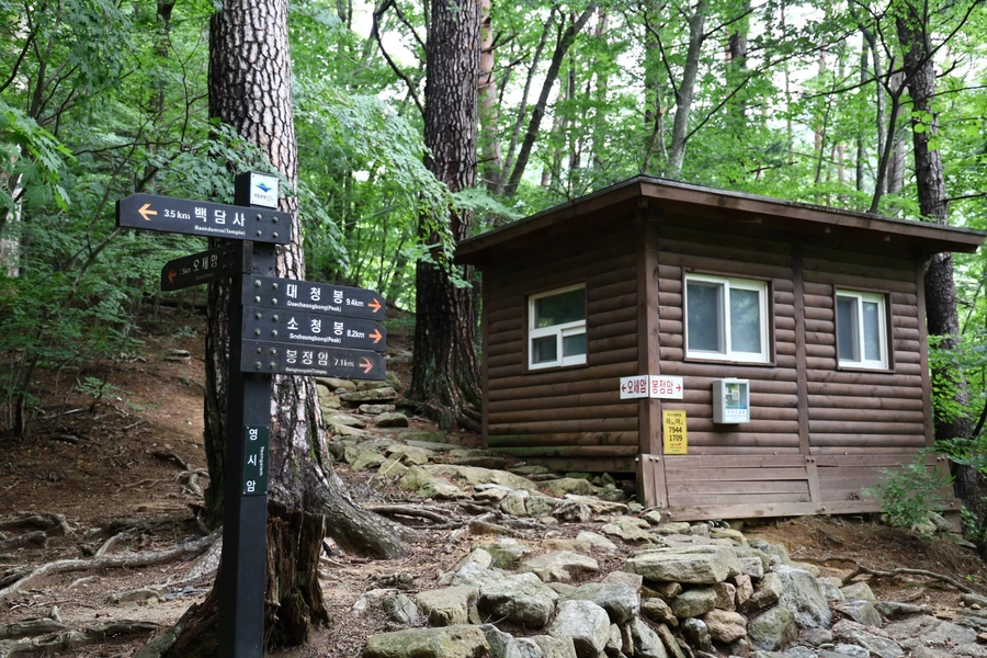 영시암을 지나 나무 계단으로 올라가면 오세암과 봉정암의 갈림길이 나온다. 예전에 이길로 오세암을 갔던 추억을 생각하면서, 우리는 봉정암 쪽으로 걷는다. 물론 수렴동 대피소까지 가는 것이다.