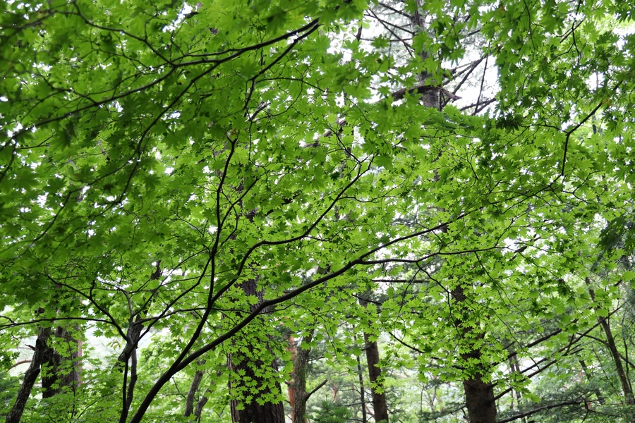 단풍잎이 지금은 파랗지만, 가을을 준비하고 있으리라.