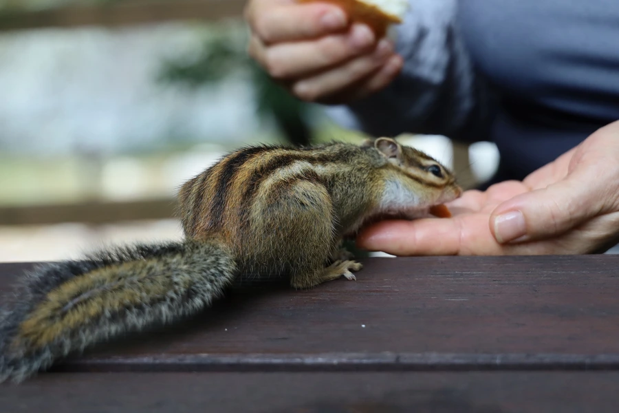 그런데, 우리가 나무 테이블에 앉아, 먹을 빵을 꺼내는 순간, 기다렸다는 듯이 다람쥐 한 마리가 가까이 온다. 오면서 만난 다람쥐들은 사람이 가까이 가면 쏜살같이 도망가기 바빴기 때문에 정말 신기했다.