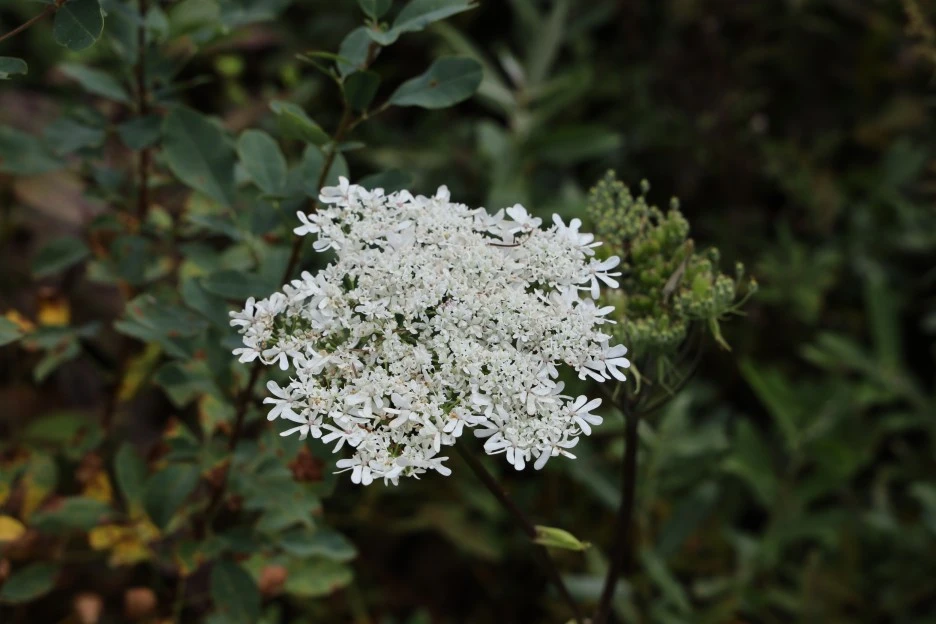 그 많은 궁궁이와 비교할 어수리가 딱 한 포기 있었다. 어수리 꽃 모양은 가장자리가 나비 모양이라 궁궁이에 비해 화려한 편이다.