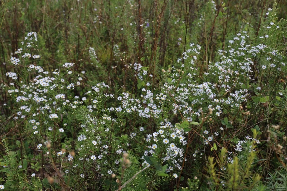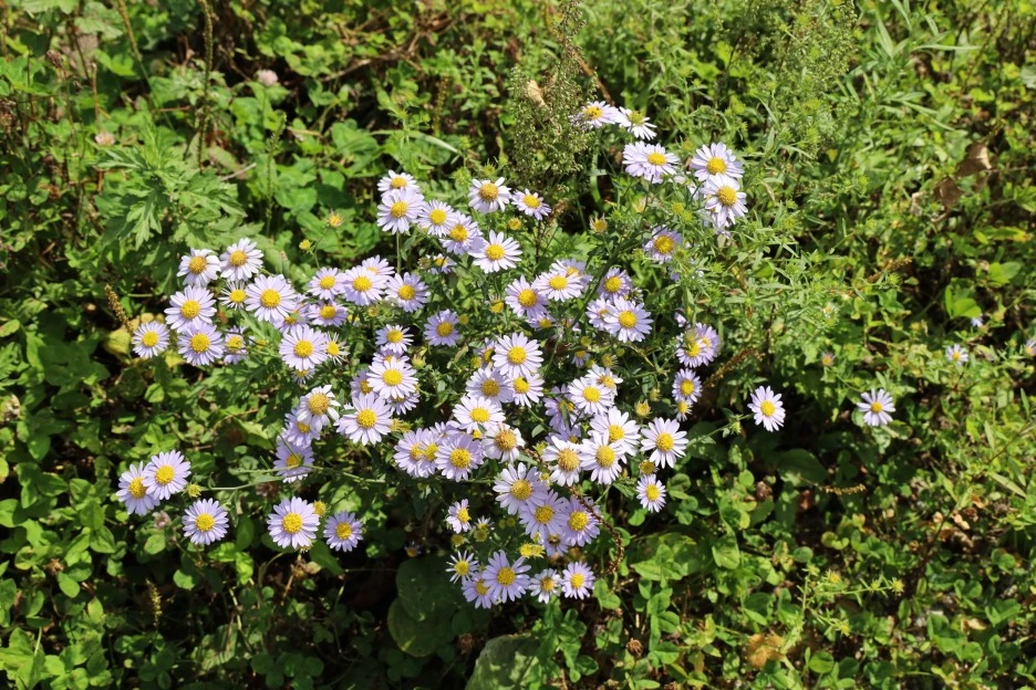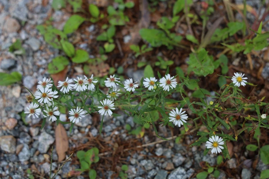 하얀 꽃이 개망초와 비슷하지만 다르다. 미국쑥부쟁이다. 쑥부쟁이보다 훨씬 꽃의 크기가 작고, 잎도 가늘었다. 늘 이 꽃이 궁금했는데, 이번에는 작정을 하고 검색해서 알게 되었다.
