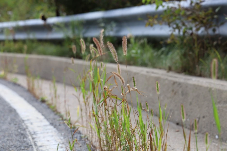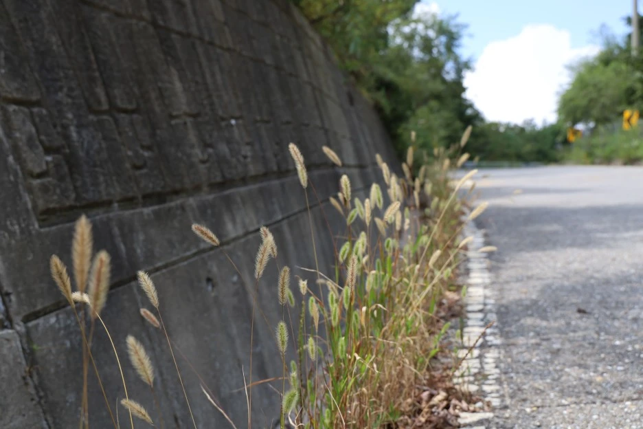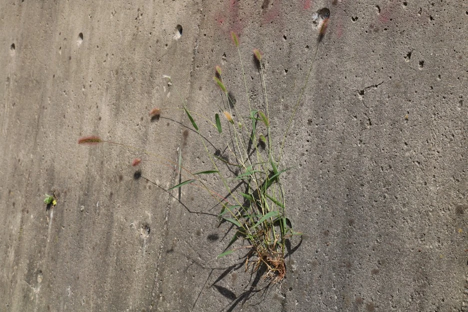 도로 벽의 물구멍에 얼마나 흙이 있기에 강아지풀이 살고 있을까?