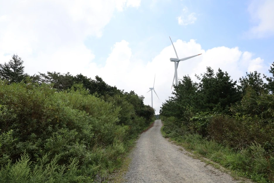풍력발전기를 관리하는 사람들의 모습이 보였다. 이 도로는 풍력발전기 관리를 위한 도로인 것 같다.