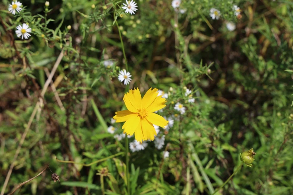도로변에 야생화 동산이 조성되어 있었다. 노랑 코스모스를 비롯하여 동자꽃, 백리향, 꼬리풀, 미역취, 꿩의 비름 등이 서로 어울려 사이좋게 살아가고 있는 모습이 보기 좋았다.