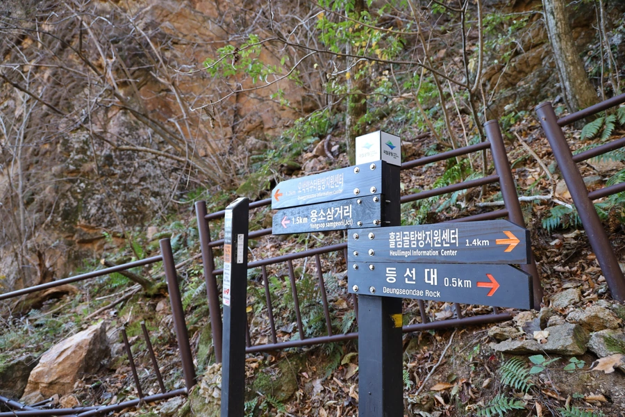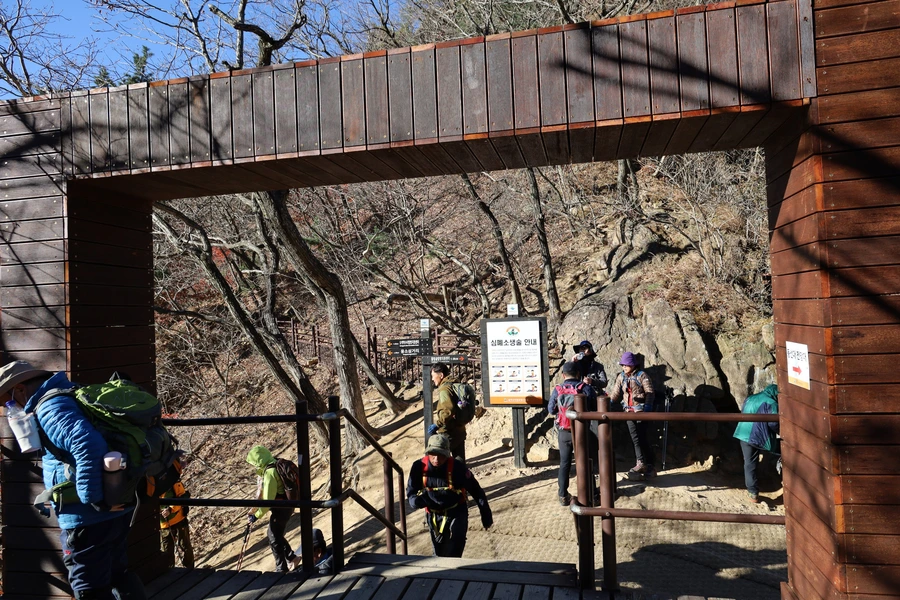 우리가 내려온 용소폭포 삼거리다. 예약을 하지 않은 탐방객들이 들어가려다 제지를 받는 경우가 더러 있었다