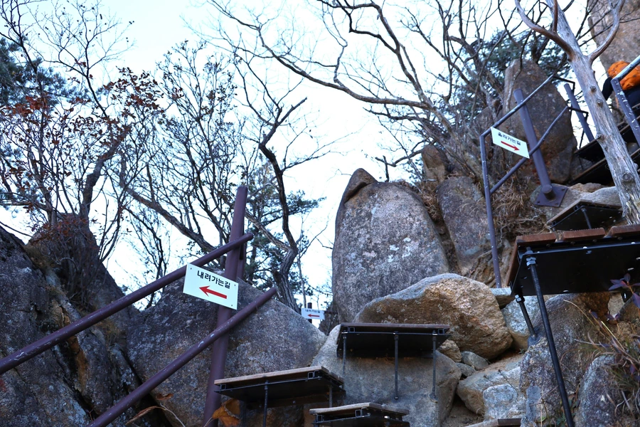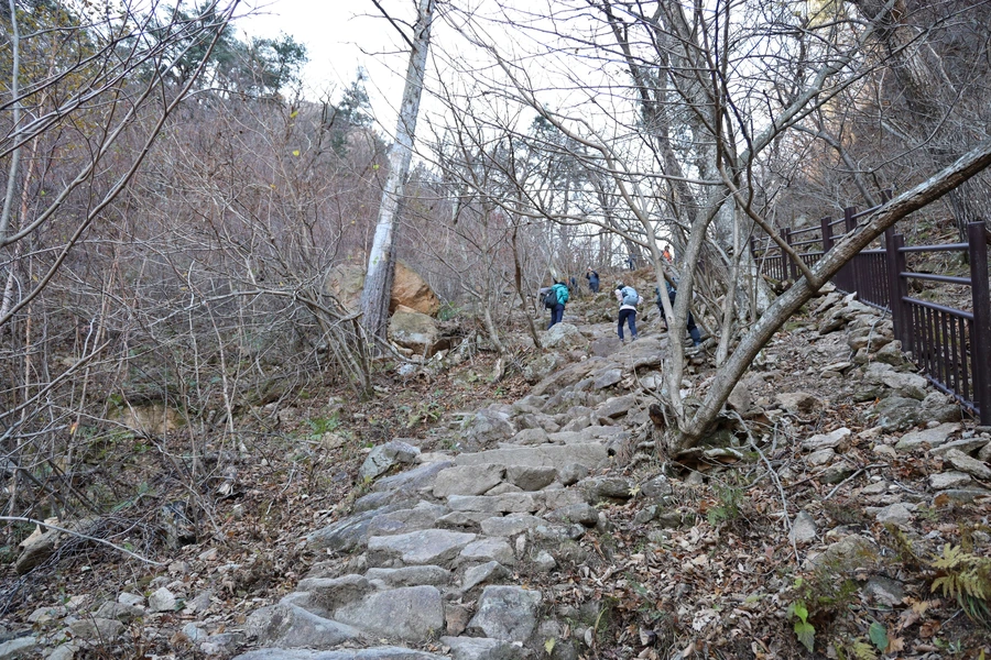 등선대까지는 가파른 산길이다. 초입에는 계단이 설치되어서 편했지만, 올라가는 경사진 길에는 헉헉댈 수 밖에 없다. 언제부턴가 계단을 빨리 올라가면 숨이 가쁜 증세가 생겨서 오르막길에서는 일부러 천천히 걷는다.