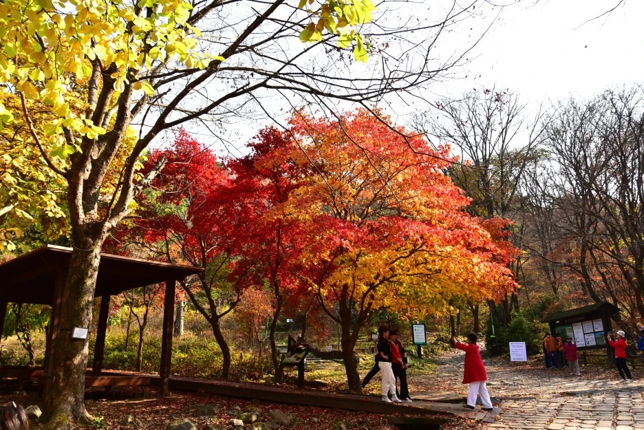 그새 관광객들이 많이 올라와, 단풍나무 앞에서 가을을 담고 있다. 나이와 상관없이 까르르 터지는 웃음이 반갑다. 오랜만의 나들이에서 예쁜 가을을 만나곤 너도나도 소녀가 된 기분이리라.