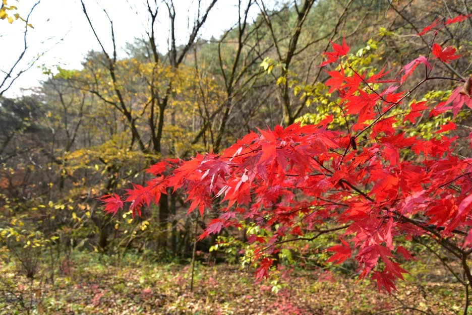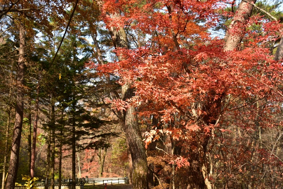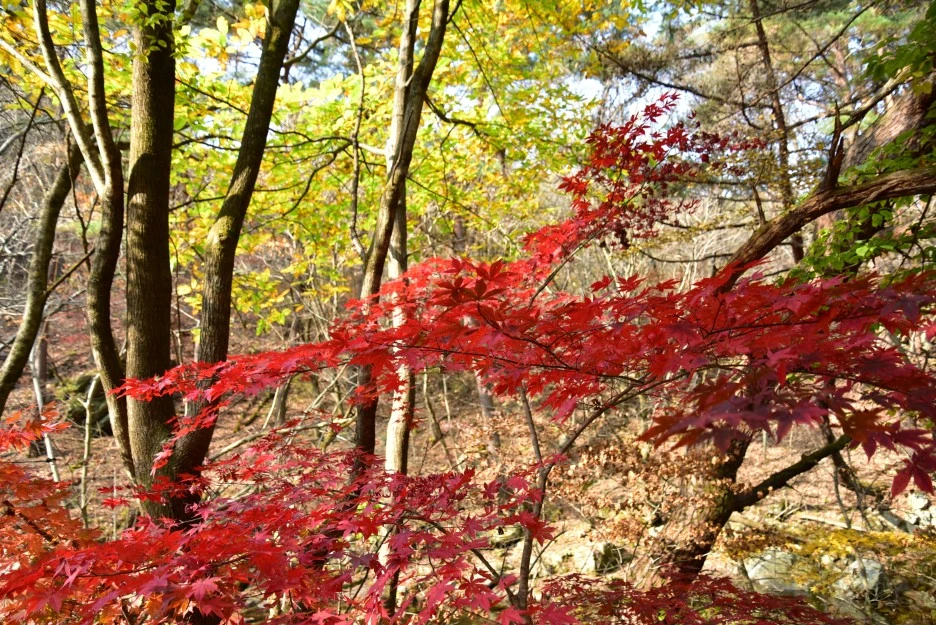 단풍을 볼 수 있으리라는 기대를 하지 않았는데, 대곡야영장에 단풍나무는 아직 멋진 색감을 유지하고 있어서 반가웠다.
