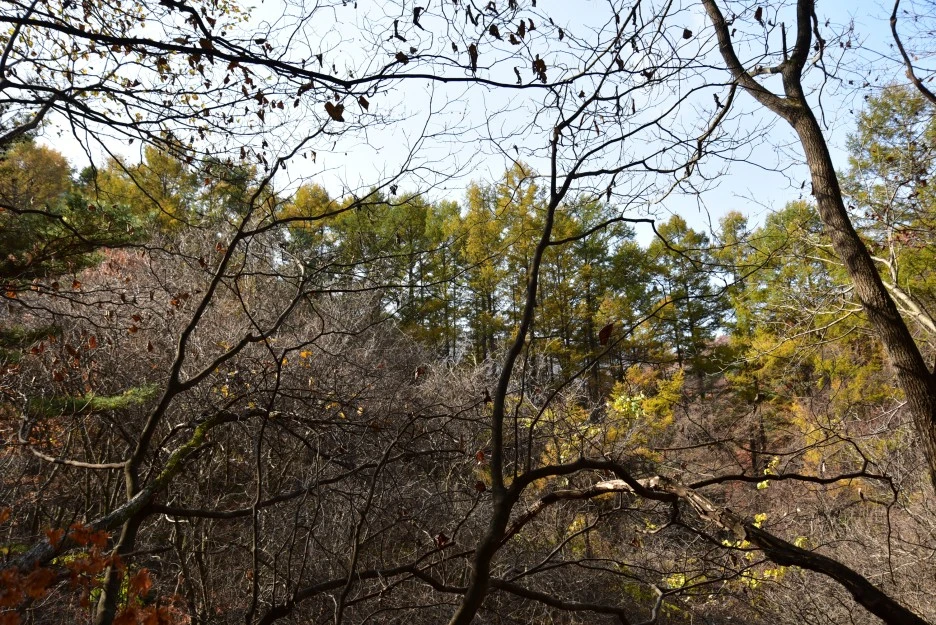 가까이 보이는 나무는 이미 시들었지만, 멀리 보이는 낙엽송은 멋진 단풍빛으로 서운함을 위로하는 것 같다.