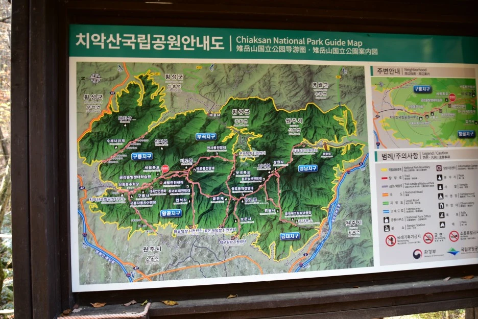 치악산 국립공원 등산 코스는 모두 5군데다. 황골지구, 금대지구, 성남지구, 부곡지구, 구룡지구 모두 한 번 이상은 가 보았다. 이제는 그저 추억의 한 자락이다. 비로봉을 다시 갈 수 있을까? 가장 오래 걸은 기억은 부곡지구에서 곧은치 - 쥐넘이고개 - 비로봉 - 원점회귀였는데, 19km를 8시간 동안 걸은 적이 있다.